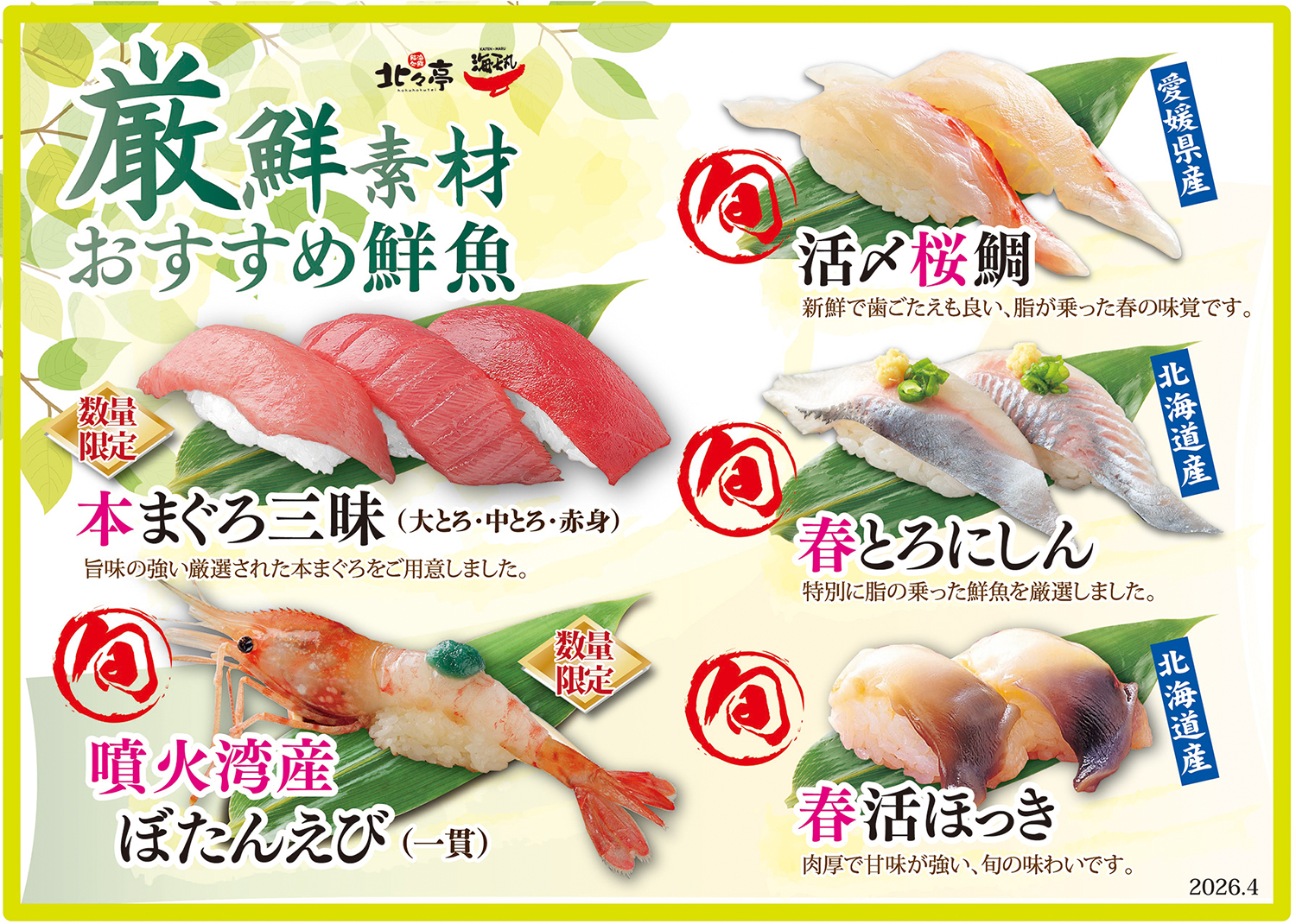 2026年4月28日<旬の厳選素材をご用意いたしました>